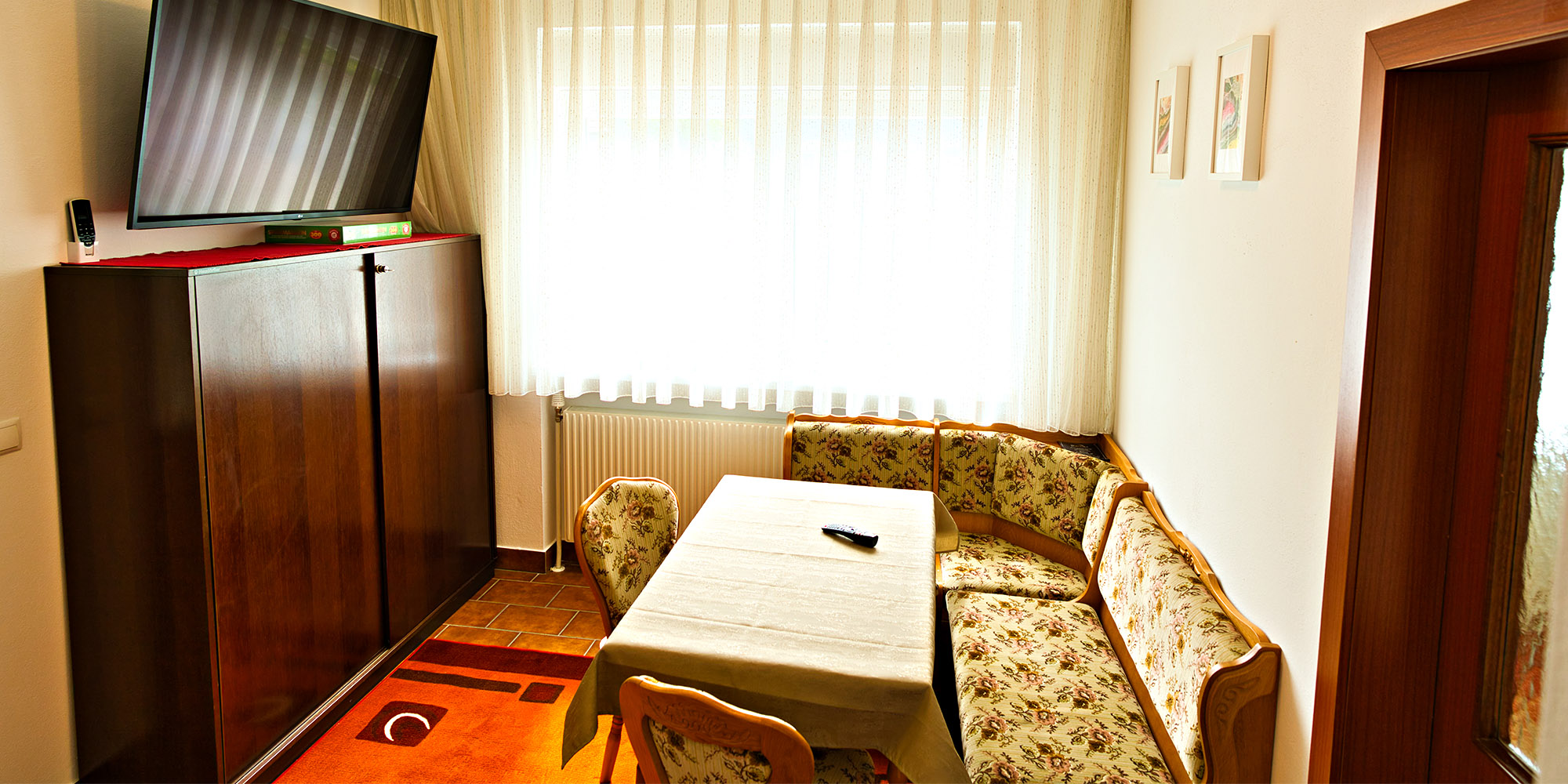 Beim Frühstücken auf der Eckbank kann man sich vom großen 55“ Flat Tv, berieseln lassen und auch am Abend Filme genießen. Es sind über 100 verschieden nationale und internationale Sender des Kabel TV-Anbieters vorhanden (Großteiles Deutschsprachig). Das ganze Apartment ist durch eine Klimaanlage klimatisiert und über eine Zentralheizung beheizt.