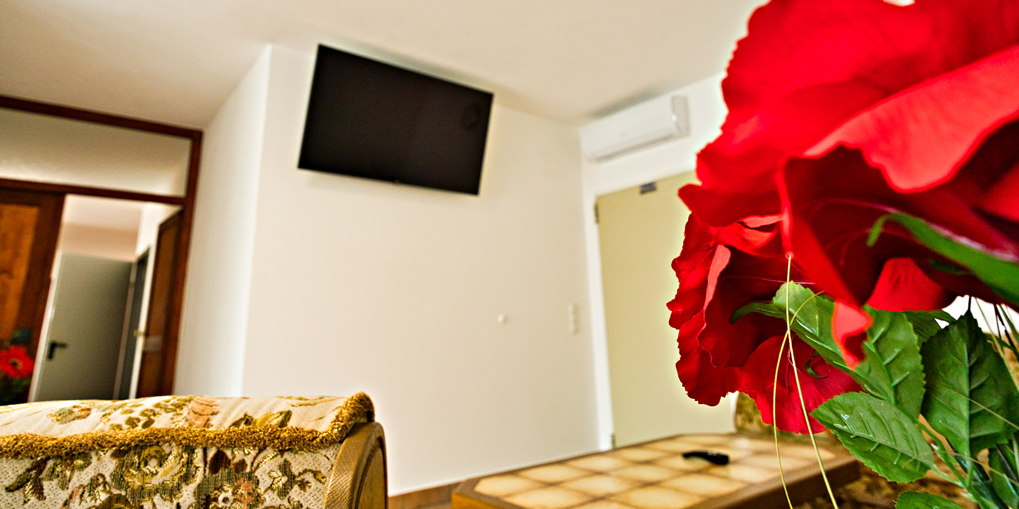 Beim Frühstücken auf der Eckbank kann man sich vom großen 55“ Flat Tv, berieseln lassen und auch am Abend Filme genießen. Es sind über 100 verschieden nationale und internationale Sender des Kabel TV-Anbieters vorhanden (Großteiles Deutschsprachig). Das ganze Apartment ist durch eine Klimaanlage klimatisiert und über eine Zentralheizung beheizt.